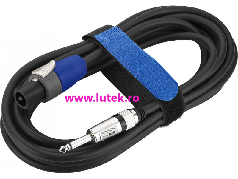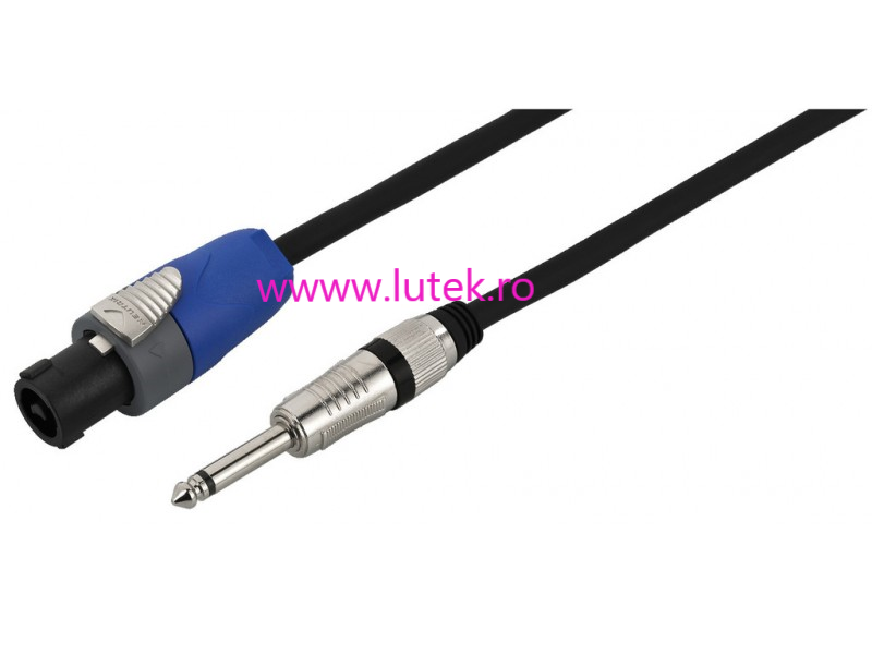 Cablu boxe cu mufa spekon si jack mono 6,3 mm,este un cablu profesional,special pentru boxe,foarte flexibil,cu conectori neutrici,destinat conectari incintelor acustice la amplificatorele de putere sau mixere amplificate.