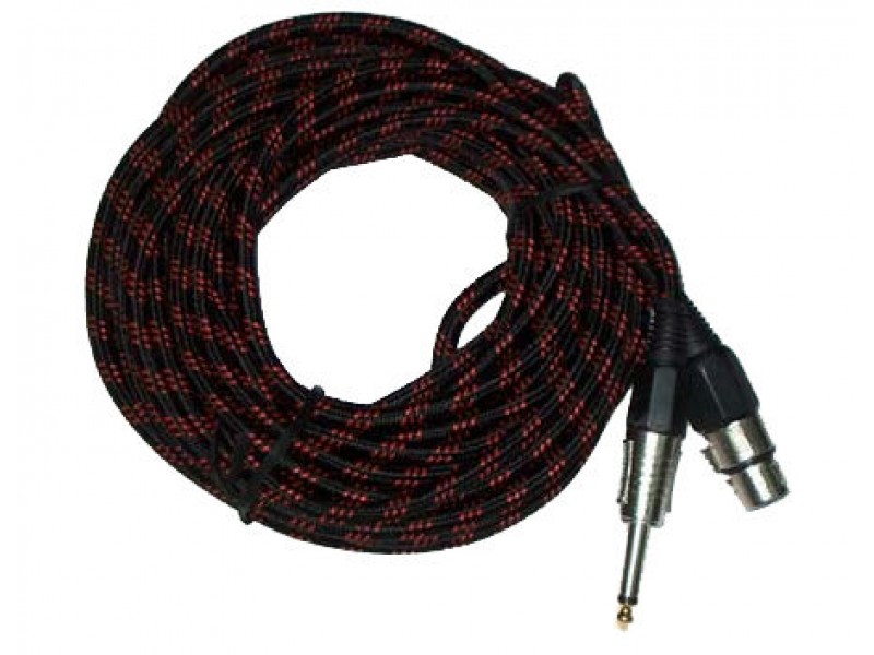 Cablu microfon XLR mama - mufa jack mono 6.3 mm tata, lungime 5 m, protectie din panglica de bumbac.