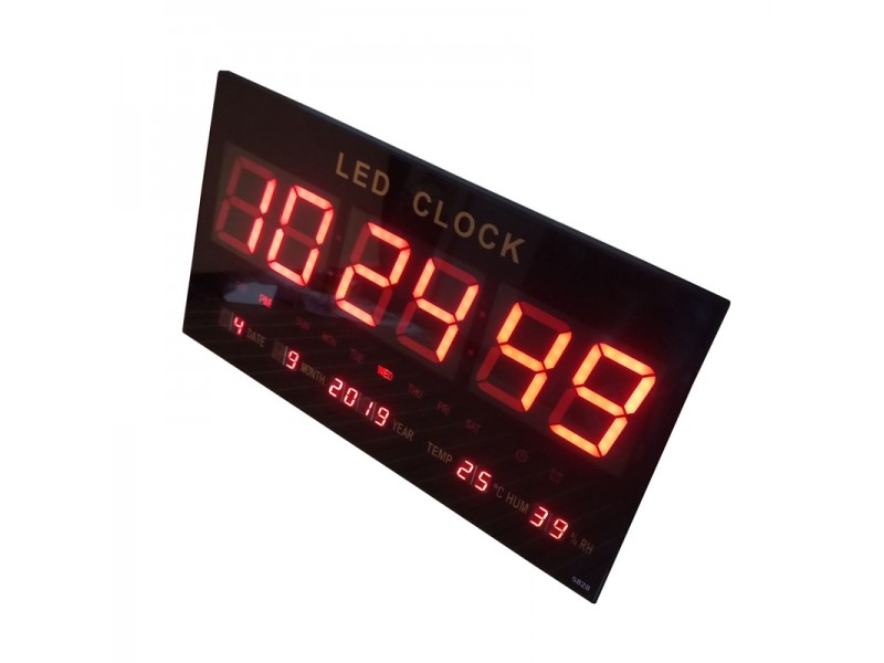 Ceas de perete cu afisaj led rosu ce are incorporata o baterie pentru memorarea setarilor, in cazul unei pene de curent electric. Este potrivit pentru casa, spatii comerciale, saloane, sali de asteptare, unitati de catering, sali de fitnes, etc. Ceasul de perete afiseaza cu caractere mari si luminoase ora, calendarul, temperatura si umiditatea, putand fi agatat cu usurinta pe orice perete.