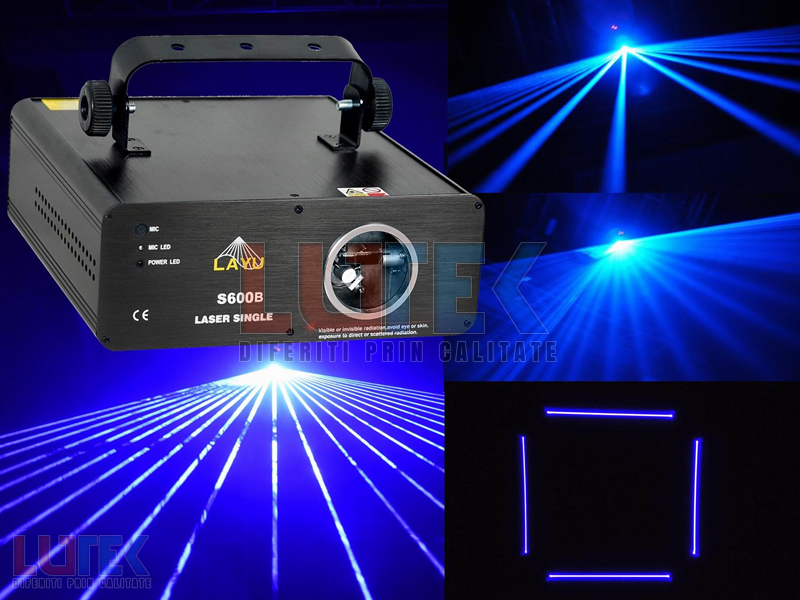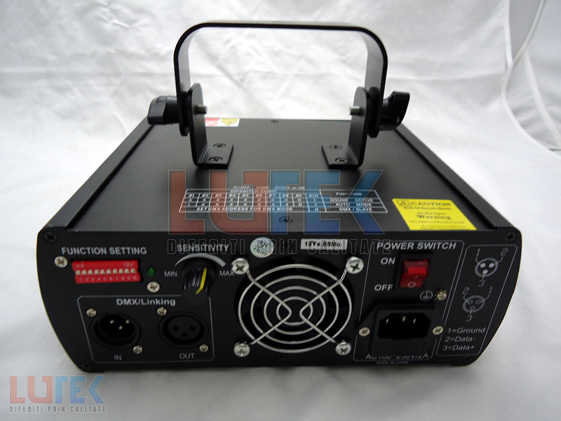 Caracteristici: Raza laser este controlata de sunet activ cu program de proiectare avansat, mai mult de 100 de modele cu laser, peste 300 de efecte laser. Panoul a LED indicator pentru sunet activ. Laserul va închide cu laser, atunci când muzica se opreste în mod activ de sunet.