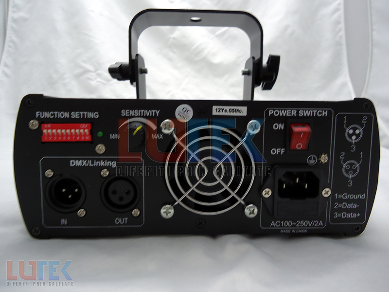 - Interfata: 3 pini XLR jack pentru DMX sau Maser-Slave care leagÄ
