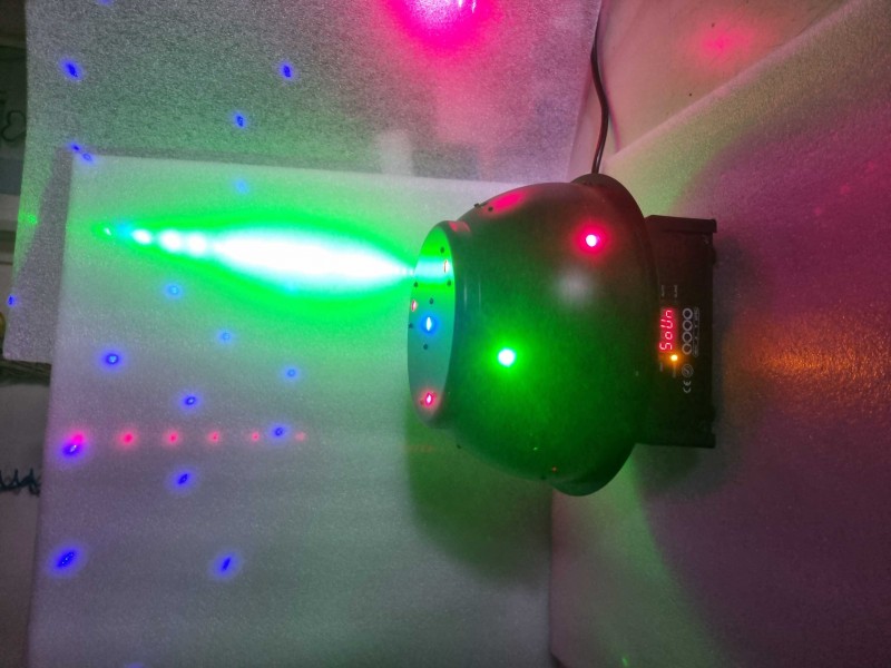 Laser RGB semisferic 180 gr Disco - Party ,este destinat evenimentelo pary sau disco cu un factor de umplere cu lumina color a sali foarte mare . Forma semisferica permite lumini celor trei lasere incorporate