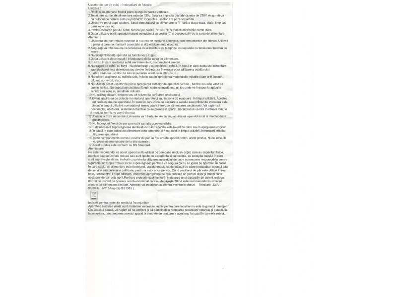 Va rugam nu puneti in geamantan(bagaj), imediat dupa utilizare pentru a nu deteriora alte lucruri.,  Depozitare si reciclare ,ca orice aparat electrocasnic  !