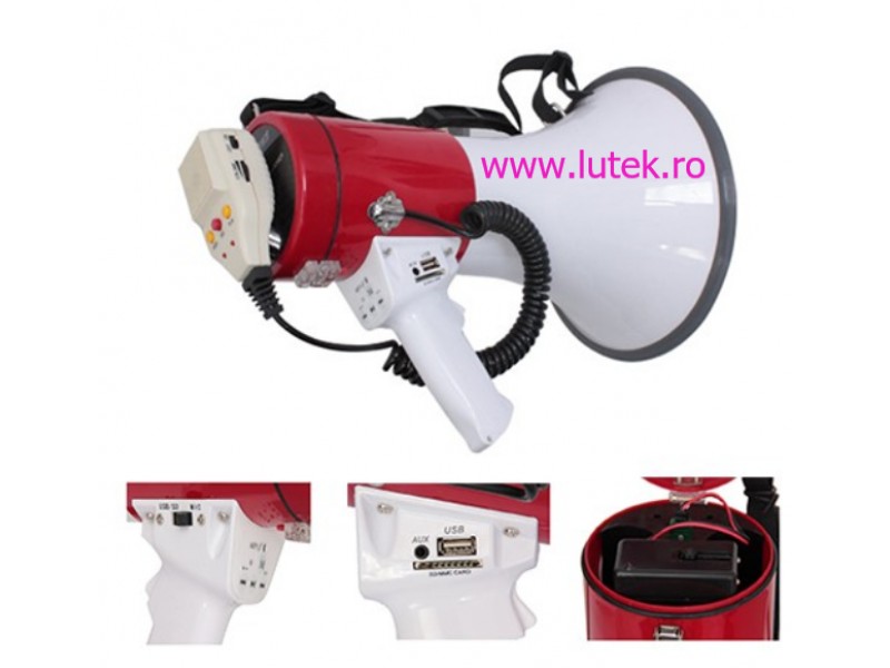Portavoce megafon 50W cu USB , inregistrare si acumulator,este un megafon destinat anunturilor in aer liber,