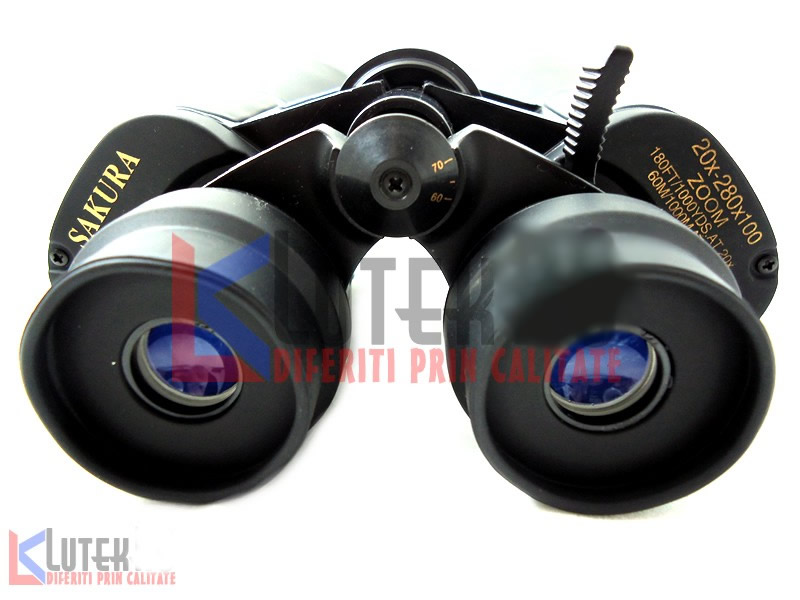 Binoclu Sakura 20x-280x100 se livreaza cu o curelusa pentru tinut de gat, geanta de transport, capac de plastic pentru protejarea ocularelor si obiectivelor pe durata transportului