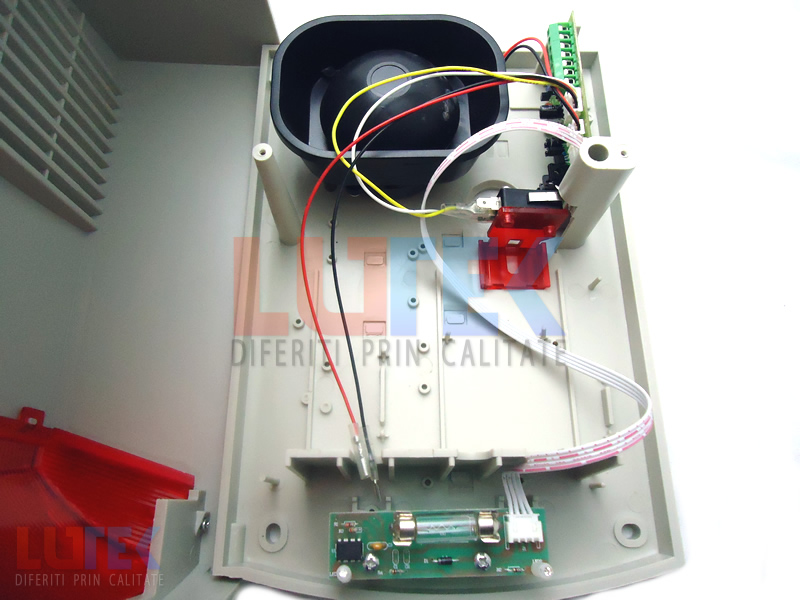 Autoprotectie contra taierii firelor si a sabotajului, declansaza sirena la disparitia tensiuni de alimentare , sau la desprinderea din perete , sau deschidere cutie.
