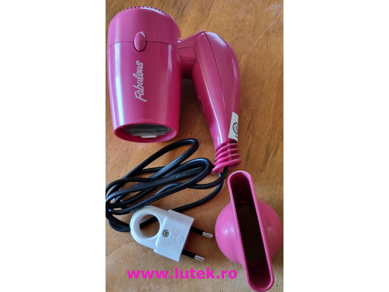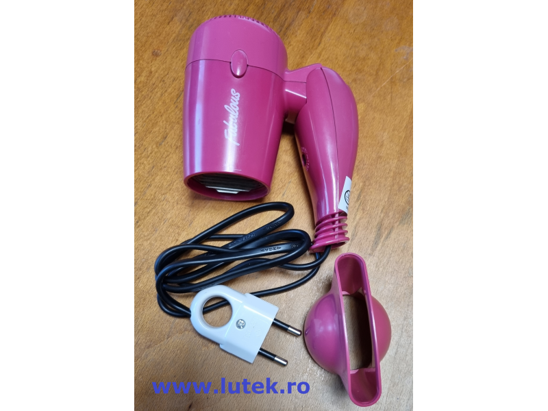 Feon voiaj mini special pentru calatorii. Este mic si foarte eficient motiv pentru care producatorul la incriptionat cu FABULOUS, Manerul este rabatabil astfel volumul ocupat la transport este redus deci ; usor de transportat. Uscator de par miniatura.